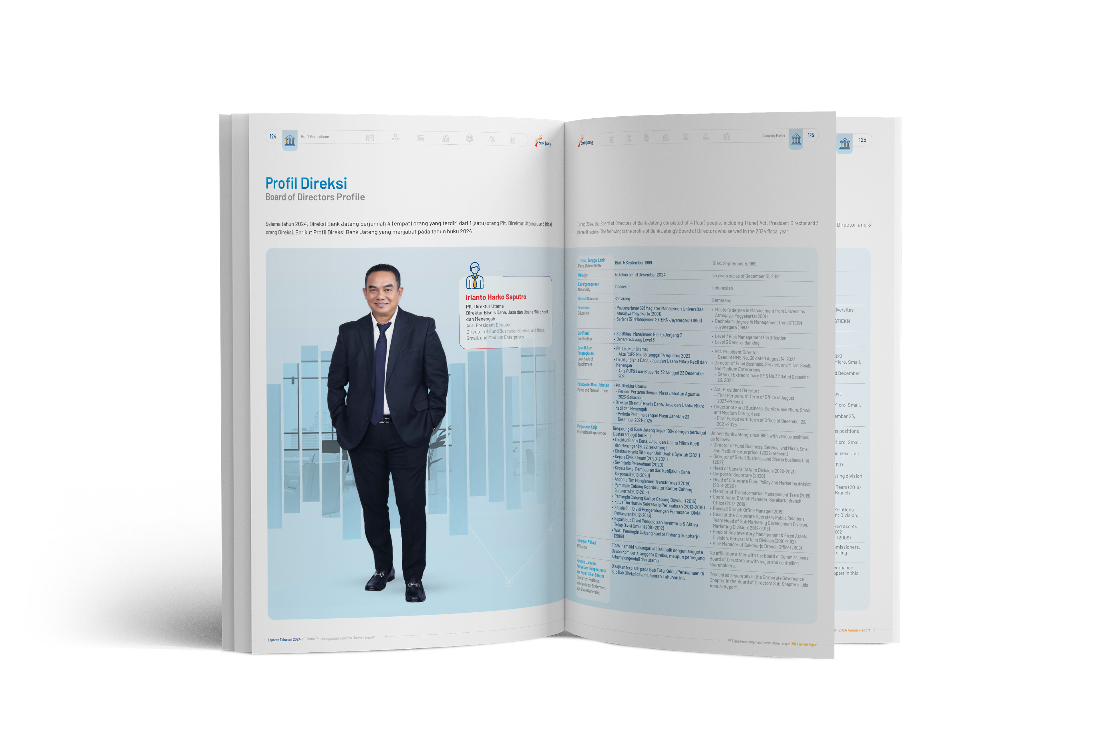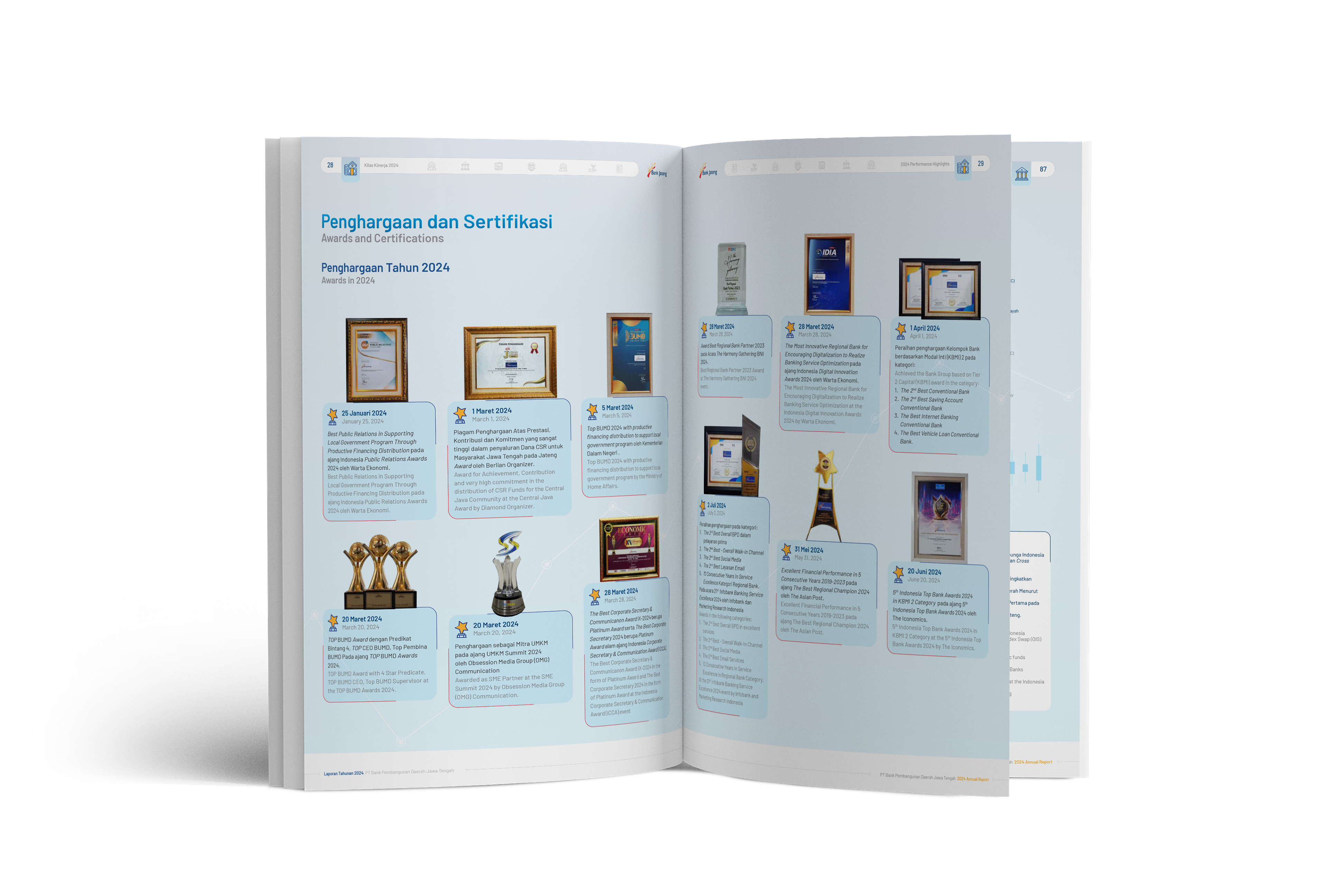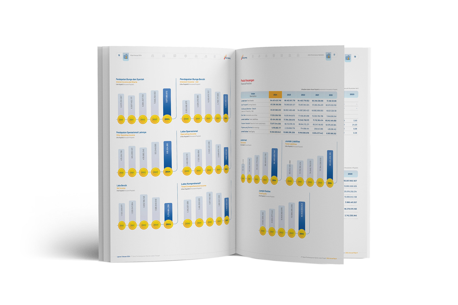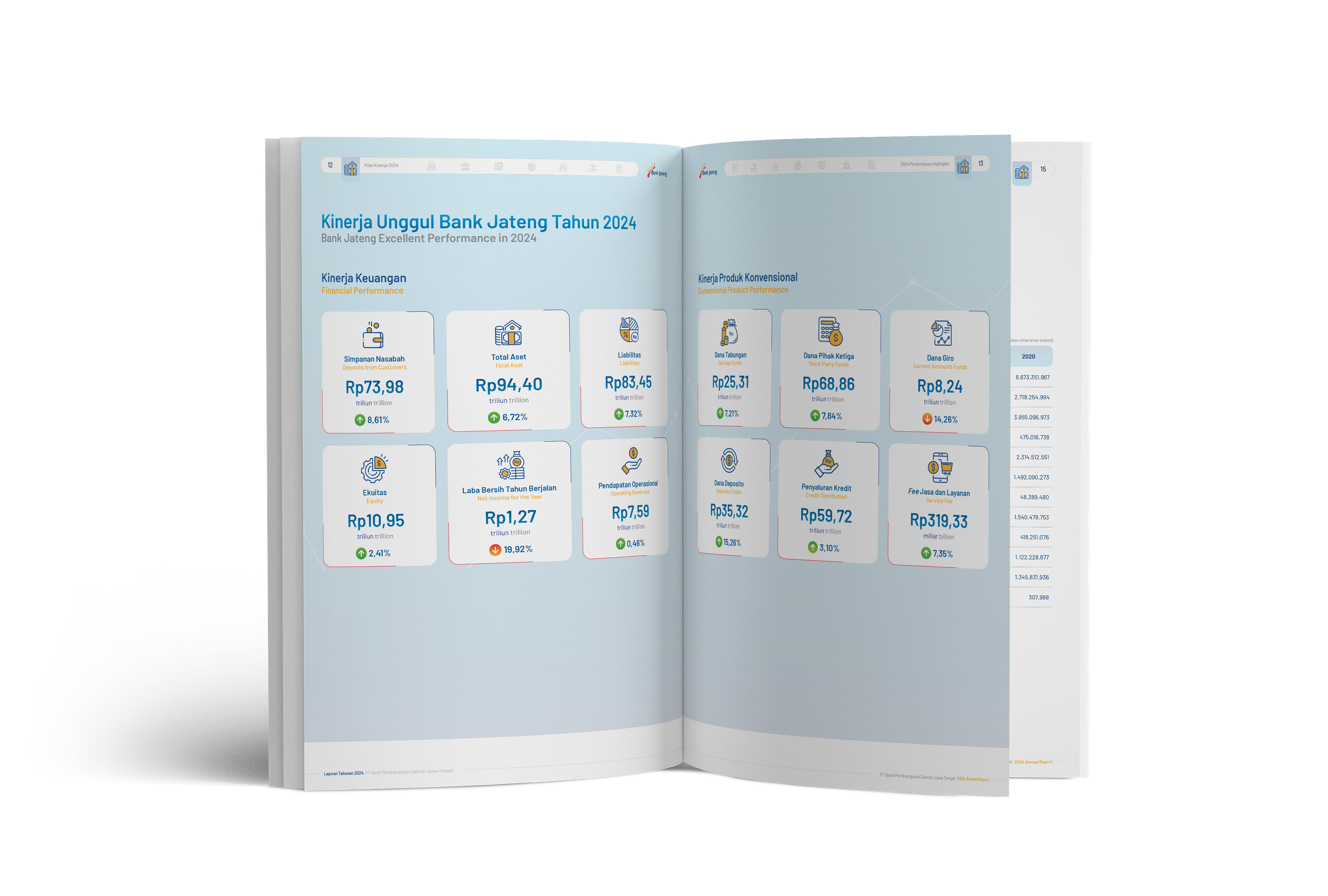 From January to April 2025, our creative team collaborated with a Jakarta-based consulting agency to deliver a cohesive, dual report for PT Bank Pembangunan Daerah Jawa Tengah (Bank Jateng). We developed the overarching concepts and executed the full design for both the 2024 Annual Report and Sustainability Report.