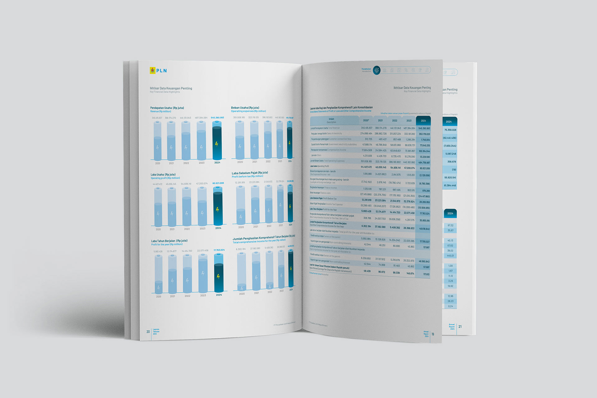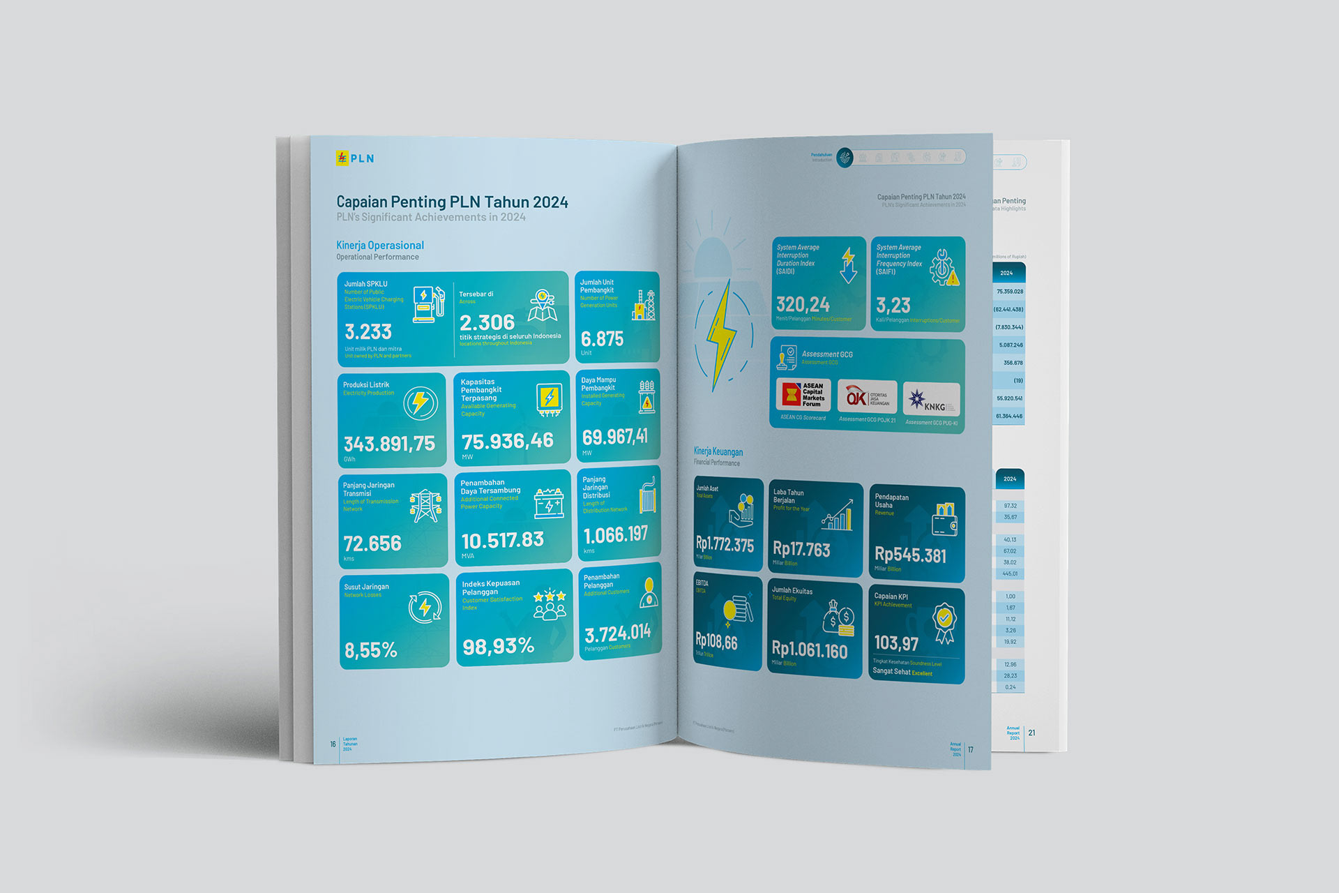 In collaboration with a Jakarta-based consulting agency, our team delivered the design for PLN's 2024 Annual Report. The project's highlight was a groundbreaking AI-generated cover design, which set the tone for a modern and innovative report.
